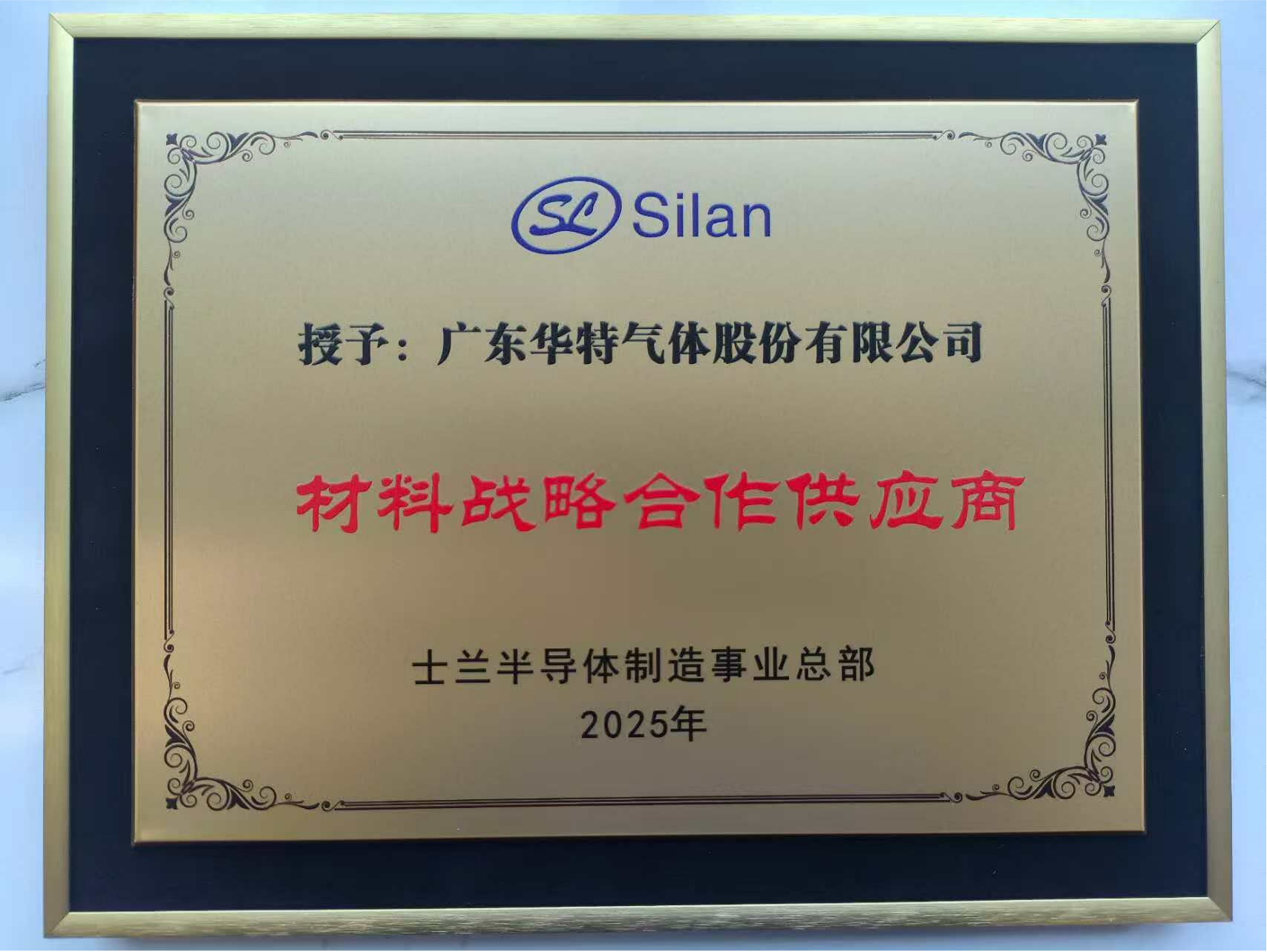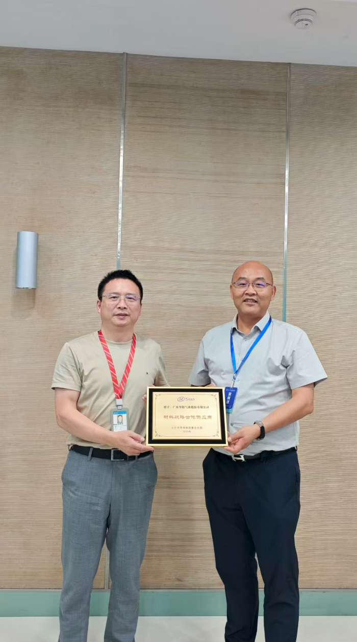 近日,广东永利集团304am登录气体股份有限公司(以下简称“公司”)凭借卓越的产品性能及稳定的供应能力,被中国领先的半导体IDM企业——杭州士兰微电子股份有限公司(以下简称“士兰微”)旗下的士兰半导体制造事业总部正式授予“材料战略合作供应商”荣誉称号。此项授牌不仅标志着公司在高端半导体材料领域的研发实力与稳定供应能力获得产业链核心企业的高度认可,也是彰显在推动特种气体国产化进程中的关键作用。